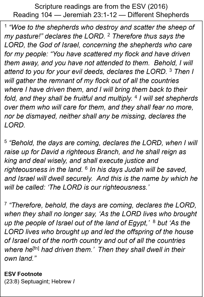 Holy Words — The shepherds of Israel—the prophets and priests—had strayed from the truth of God’s Word, committing spiritual adultery and leading the people astray with them. They had been given the Torah, written through Moses, the book of Judges, the books of Samuel, most of Kings and Chronicles—all describing God’s direction and the peoples’ sin. It was God’s Word, “his holy words” (v. 9). Those “holy words” that Jeremiah mentions, however, were spoken in the context of sorrow, where he said, “My heart is broken within me…” This friendless prophet was sent with this message of judgment against the false prophets and wayward leaders before Babylon conquered Jerusalem: “I will bring disaster upon them in the year of their punishment, declares the LORD” (v. 12). They were not only “holy words” coming from a holy God, but they were also horrifying words of punishment. The covers of our Bibles say, “Holy Bible.” They are holy because of the Source, the Holy God, but they contain both wonderful words of direction and blessing as well as the words of warning that there will be punishing consequences for sin. If we are following the wonderful words, we have no fear of the warning words.