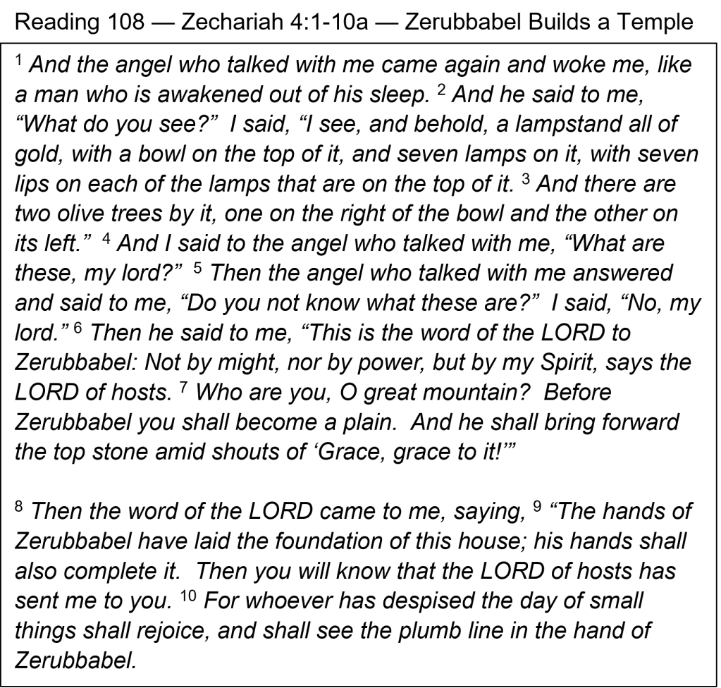 Continuing Presence — The Jews had been released to return to Judah from Babylon. Zerubbabel was appointed to be the governor and Joshua was the high priest. They were surrounded by the discouraging sight of the ruins of Solomon’s temple and the city of Jerusalem. God had ordered a new temple to be built, but it would be much smaller than the one the older returnees remembered. The people still felt defeated and alone, so God challenged and encouraged them. He gave them three commands: “Be strong … Work … [and] Fear not” (vv. 4-5). In the middle of these commands were two statements of God’s presence: “I am with you … [and] My Spirit remains in your midst” (vv. 4-5). In this context, the meaning seems to be that, whether you see any evidence of God’s presence or not, keep on working with energy and confidence. How about you? Do you sometimes feel that God is not around, that the Holy Spirit is not really in your heart? Remember Zerubbabel and Joshua; keep on working and trusting. God is still present, cares about you, and is working for His purpose and for your good. We are living in “the latter glory” (v. 9) promised by God, when His people would have His Spirit living within them. We are walking temples of the resident God.