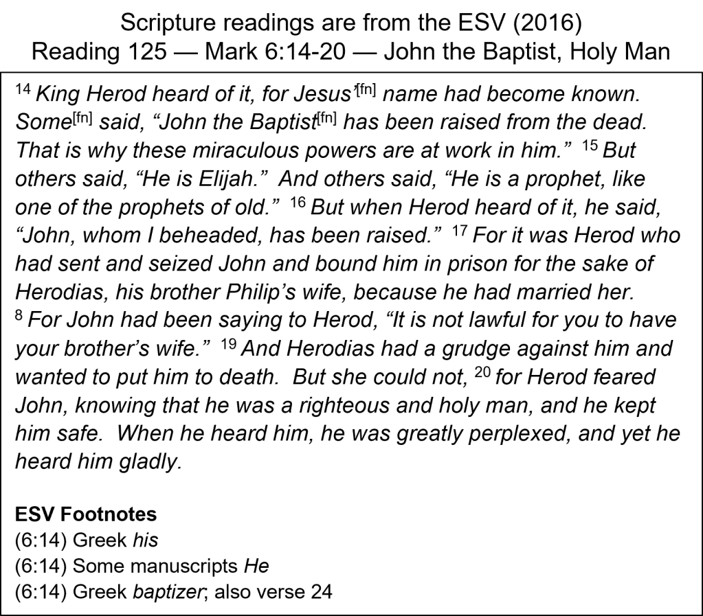 Attracted to Holiness — King Herod Antipas was popularly called a king, although he was really a tetrarch, appointed by Rome to govern the region that included Galilee. He was one of the seven sons of Herod the Great, the one who sought to kill the baby Jesus. This Herod family was composed of Edomites (descendants of Esau), who had to some degree embraced Judaism, but were not godly people. They were probably a lot like most people around us today who are nominal Christians but not born again. Herod Antipas had married the estranged wife of his brother, Herod Philip, which was against God’s Law that said, “If a man takes his brother’s wife, it is impurity…” (Lev. 20:21). John the Baptist had publicly denounced Herod Antipas for that act, which disturbed both Herod and his wife, Herodias. Herod Antipas, however, had conflicting feelings about John, and considered him to be “a righteous and holy man” (Mark 6:20), but he also “feared John.” Although he was “perplexed” when he heard John speak, “yet he heard him gladly.” Herod was both drawn and torn concerning John, just like some of our neighbors and friends today. We are the light of the world, and some people are attracted to that light but might also be afraid that it could “burn” them.