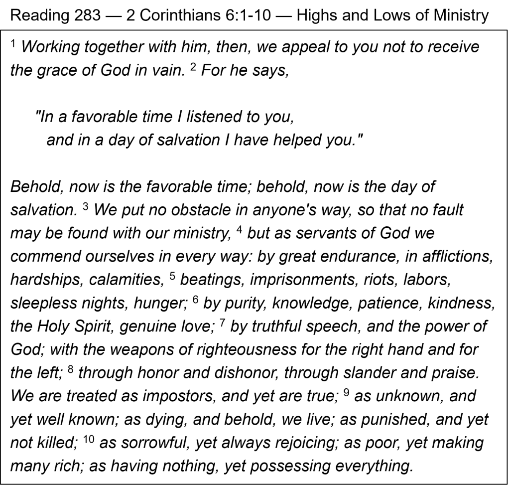 Commended by the Spirit — Our lives as Christians are testimonies to the people in the churches where we worship and serve, and to the sinful world around us. Paul wrote that “we commend ourselves” (or “prove ourselves” v. 4) by how we conduct our lives. He first concentrated on the hardships he had gone through in verses 4-5. One powerful witness to the world that we are truly different is how we handle life’s difficulties. We all face them, but does it result in bitterness, like it does for most people, or in trusting acceptance as something God can use to strengthen us? People are watching how we handle trials. In verses 6-7, Paul shifted to positive qualities that others can see in our lives, like purity and kindness. In the middle of that list, he includes “the Holy Spirit” (v. 6). Why? This is an invisible quality. They don’t see the Holy Spirit, and neither do we, but they see the effects of His divine presence in our lives. He is our empowering presence. We Christians are changed people and people notice the positive qualities He is producing in our lives.