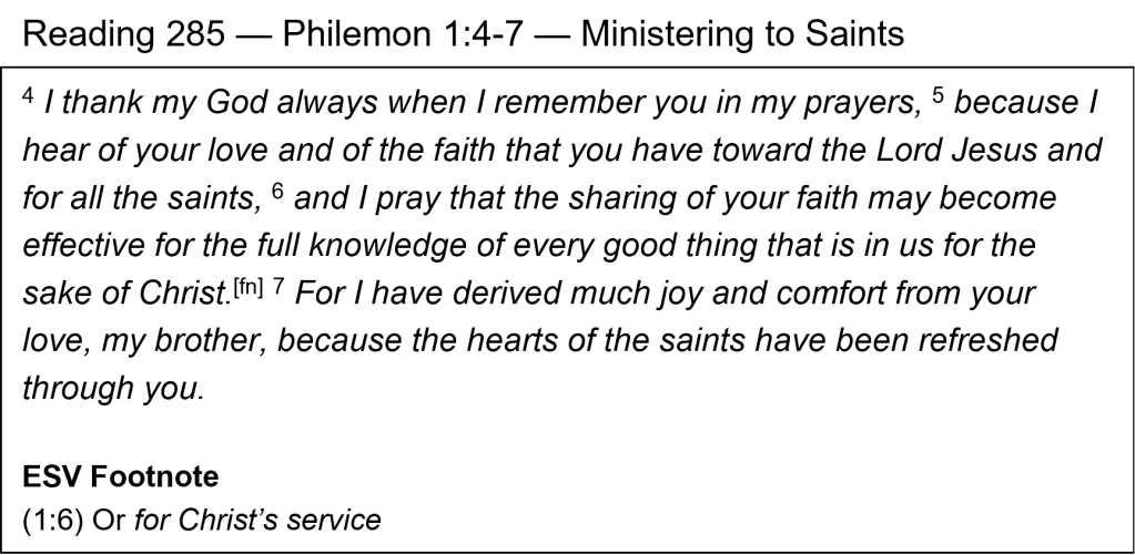 Refreshing Love — Onesimus was a slave who had run away from his master, Philemon. After leading Onesimus to Christ in Rome, Paul sent him back to Philemon in Asia Minor with this letter of explanation. Paul wrote that “I hear of your love … for all the saints” (v. 5). From whom did he hear this? It seems that it was Onesimus who had told Paul about the kindness of his master. That is a very good testimony of Philemon’s character. Although the slave had run away from his master, he praised him for his goodness. The second mention of “saints” here was when Paul wrote of Philemon that “the hearts of the saints have been refreshed through you” (v. 7). Philemon had a church meeting in his home (v. 2), which was one way that he was refreshing the saints. How do you refresh other believers? Do you have a ministry that aims at encouraging them? Philemon had found his niche in serving the Lord by ministering to His saints.