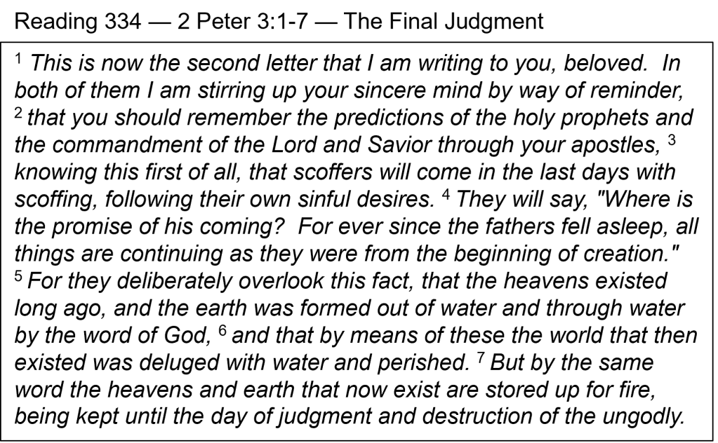 Holy Prophets — This is the last of four times the phrase “holy prophets” is used in Scripture (v. 2; cf. Lk. 1:70; Acts 3:21; Eph. 3:5). Each time, it speaks of God’s communication to His people through godly men. This final message involves scoffers who dismiss these long-delayed promises of God, in this case, the promise of Jesus’ return (v. 4). We see that attitude displayed at times today, when we hear people complain about something being “as slow as the Second Coming.” They are scoffing because they do not believe that Jesus will return. In their minds, it has been too long to be true. That is probably the same attitude that existed for many people just before Jesus was born. The promise of the Messiah from Moses that “God will raise up for you a prophet like me” (Deut. 18:15) had to wait about 1,500 years to be fulfilled. That was a long time from a human perspective, but for God, “a thousand years in your sight are but as yesterday when it is past” (Psa. 90:4), a fact about which Peter will remind us in tomorrow’s reading. Notice the contrasting frame of our passage for today: It begins with the “predictions of the holy prophets” and ends with the “destruction of the ungodly.” The believers hear and turn, while unbelievers turn to scoff.