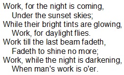 Much Remains — This book opened with a statement about the death of Moses.  Chapter 13 begins with the aged condition of Joshua, who was “old and advanced in years” (v. 1a).  We will find out in chapter 24 that he was 110 years old when he died, so he was probably in his late 80s in our reading for today.  How would you advise a faithful and successful leader when he was almost 90 years old?  Most would say, “Retire, and relax!”  Most corporations in America have set a mandatory retirement age of 72.  That was not God’s plan for Moses or for Joshua, however.  In Joshua’s late 80s, God told him, “there remains yet very much land to possess” (v. 1b).  At the end of this first paragraph, Joshua was told, “…allot the land to Israel … as I have commanded you.  …Now therefore divide this land…” (vv. 6-7).  You might be beyond your corporation’s retirement age, but God doesn’t have a retirement age for His servants.  He has gifted us to be involved in some kind of ministry, and He expects us to continue doing it until we cannot do it anymore.  This hit home to me because in two months, I will hit the 88-year milestone, just about Joshua’s age when God challenged him to continue to serve Him.  Work, for the night is coming!  That is the theme of John 9:4: “We must work the works of him who sent me while it is day; night is coming, when no one can work.”  It is also the theme of Annie Coghill’s hymn:
